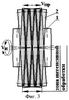Диски 2 непосредственно являются упругими элементами, размещены на ступице 1 перпендикулярно ее оси и благодаря упругости имеют возможность изменять свое положение относительно оси ступицы и относительно соседних дисков.