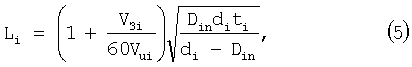 Li – длина кривой контакта i-го круга с заготовкой при внутреннем шлифовании методом поперечной подачи при вращении круга и заготовки в противоположных направлениях, определяется аналогично по ф.(2):