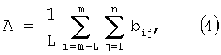 Алгоритм ориентации (вращения и горизонтального перемещения) отрабатывается следующим образом. В массиве элементов bij выделяется L строк в начале и в конце и считывается среднее количество черных элементов А и В в этих частях массива: