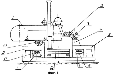 Предлагаемое изобретение поясняется чертежами, на которых показаны следующие виды установки: фиг.1 – вид спереди, фиг.2 – вид сверху (без ленточно-пильного механизма).