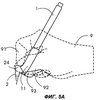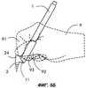 фиг.5А изображает на виде сбоку пишущий инструмент в одном положении удерживания пальцами пользователя,
