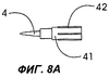 Далее описание следует со ссылками на фиг.8А. Для устойчивого письма патрон 41 должен плотно входить в пишущий наконечник 2, но это также осложняет удаление пишущего элемента при его замене. Поэтому на поверхности патрона 41 сменного пишущего элемента выполнены усиливающие ребра 42 для снижения трения между патроном 41 и пишущим наконечником 2, так что патрон 41 может быть легко вынут из пишущего наконечника 2.