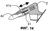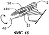 Далее описание следует со ссылками на фиг.14. Патрон 41с сменного пишущего элемента большего размера установлен снаружи вокруг пишущего наконечника 2, при этом сменный пишущий элемент 4с также поддерживается фиксирующим штырем 21.