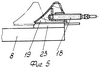 Опора-замок 4 содержит каркас 8 (фиг.3) со штырями 9 для фиксации его в отверстиях 6 настила 5, сервопружину 10, ось 11, на которой установлены рычаг 12 и поворотный упор 13, предотвращающий возврат в исходное положение, закрепленного на оси 14 поворотного двуплечего захвата 15, поворотный рычаг 16 с рукояткой 17 и винт 18 перемещения переналаживаемого упора 19. Соединение между собой рычагов 12 и 16 обеспечивается тягой 20.