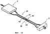 Фиг.9 – схематическое изображение в поперечном разрезе, показывающее вариант соединительного удерживающего устройства в убранном положении в выемке пола с конфигурацией нижней части железнодорожного габарита.
