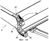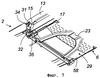 Так, поворотному кожуху может быть придана дополнительная функция. Он может содержать средство поддержания и удержания в положении и в состоянии готовности 91 соответствующей концевой площадки вагона во время погрузочно-разгрузочных операций. Это средство показано на Фиг.31, где верхняя сторона кожуха 70 содержит захватную и блокирующую конструкцию 92 Y-образной формы, в которой стопорится край 93 направленного вниз загиба 94 корпуса концевых площадок.