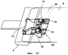 Фиг.22 – увеличенное детализированное изображение с одной стороны механизма стопорения разъемного соединительного узла для соединения концов грузовой железнодорожной конструкции.