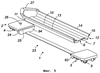 Вагон содержит также нижние продольные борта 17 и 18, поперечные концевые настилы 19 и 20 и приемные порожки 21 и 22.