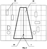 Отображение ВПП и обстановки аэропорта производят в координатах, определяемых базой аэропорта и радиолокатором обзора летного поля, поэтому отображение третьего этапа обычно производят в координатах, отличных от координат отображения первой и второй зоны, определяемых посадочным радиолокатором. Пример отображения обстановки аэропорта в районе ВПП приведен на фиг.3 (проекция по линии курса), где кроме ВПП 22, точки приземления 23 также отображаются движущиеся объекты вблизи ВПП 24 (автотранспорт, трапы, ориентиры, погрузочно-разгрузочные машины и т.д.).