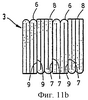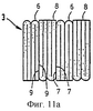 На фиг.11а и фиг.11b иллюстрируется две возможные разные конфигурации изделий 5 в наборе 3. Как указано и иллюстрируется на фиг.11a, заданное число изделий 5 в общей ориентации контактного взаимодействия передняя поверхность 7 – задняя поверхность 9 изделий 5 изменено на контактное взаимодействие передняя поверхность 7 – передняя поверхность 7 (или задняя поверхность 9 – задняя поверхность 9), соответствующее настоящему изобретению, и может быть тем же заданным числом изделий 5, в котором контактное взаимодействие нижняя поверхность 8 – нижняя поверхность 8 (или верхняя поверхность 6 – верхняя поверхность 6) общей ориентации изменено на контактное взаимодействие нижняя поверхность 8 – верхняя поверхность 6, соответствующее настоящему изобретению. На фиг.11b иллюстрируется конфигурация, в которой заданное число изделий 5, имеющих контактное взаимодействие передняя поверхность 7 – передняя поверхность 7 (или задняя поверхность 9 – задняя поверхность 9), может не быть тем же заданным числом изделий 5, имеющих контактное взаимодействие нижняя поверхность 8 – верхняя поверхность 6, соответствующее настоящему изобретению.
