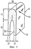 На фиг.3 иллюстрируется другой вариант осуществления сложенного изделия 5, в котором нижняя секция 13 содержит зазор 23, так что размер нижней секции 13 уменьшен по сравнению с размером верхней секции 11 (однако это указание может также относиться к непоглощающим изделиям). При использовании компрессионной упаковки этого варианта осуществления сложенного изделия 5, в котором нижняя секция 13 содержит зазор 23, сжимаемость нижней секции 13 больше по сравнению со сжимаемостью верхней секции 11. Для множества вдвое сложенных изделий 5, в частности поглощающих изделий, конфигурация, иллюстрируемая на фиг.3, в результате приведет к тому, что толщина 25, соответствующая промежным областям 14 изделия 5, будет, в общем, больше толщины 21, соответствующей поясным областям 12 изделий 5. В сложенном изделии 5, иллюстрируемом на фиг.3, промежная область 14 образует верхнюю секцию 11, а поясные секции 12 образуют нижнюю секцию 13.