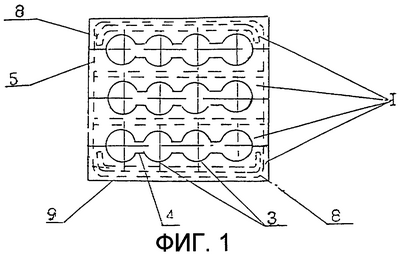 на Фиг.8 – промежуточная опора (разрез), вид сверху, с двумя полыми армирующими элементами;