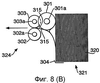 6. В этом случае первичный “захват” осуществляется за счет поворота захватывающих роликов 301 в направлении по часовой стрелке, чтобы передняя кромка бумаги была направлена к месту зажима между роликами 302, 303.