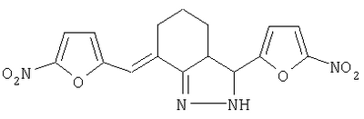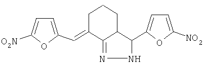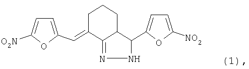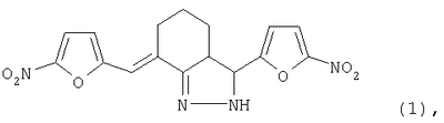 3-(5-нитрофурил)-7-(5-нитрофурфурилиден)-3,3а,4,5,6,7-гексагидро-2н-индазол формулы проявляющий противомикробную активность к бактериям рода Staphylococcus.