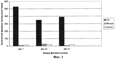 Фиг.1. Скрининг индивидуальных фаговых клонов на мышах с привитой аденокарциномой легких. В качестве отрицательного контроля взят фаг fuse2, который не экспонирует рандомизованный пептид.