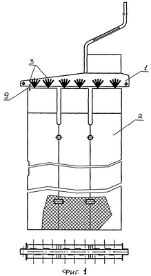Технический результат направлен на устранение недостатков прототипа и на увеличение прочности крепления, улучшение условий монтажа, снижение перегрева бруса и тем самым приводит к увеличению производительности устройства, т.е. повышению выхода по току на 5-10%.