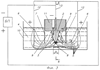 2. Устройство для гальванопластического формообразования сложнопрофилированных деталей с переменной толщиной стенки, содержащее электролизную ванну, по меньшей мере, один анод, выполненный из металла с заданными физико-химическими свойствами, и закрепленную на подвеске форму, соединенные токопроводами с источником постоянного тока, причем аноды выполнены с общей площадью активной поверхности, равной удвоенной площади рабочей поверхности формы, экранирующие устройства, расположенные на расстоянии от боковых поверхностей формы и образующие каналы переменного сечения, отличающееся тем, что в электролизной ванне дополнительно установлено экранирующее устройство, закрепленное на подвеске вдоль радиусного сопряжения поверхностей формы, шириной, обратно пропорциональной кривизне сопряжения, на расстоянии, прямо пропорциональном толщине формования стенки, образующее с другими экранирующими устройствами каналы потока ионов электрического поля с поверхности анода в направлении радиусного сопряжения формообразующей поверхности формы и последующего рассеивания их на другие участки поверхности формы по каналам переменного сечения по мере уменьшения толщины формования стенки детали.
