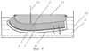Форма 2 закрепляется на подвеске 11. На рабочую поверхность формы 2 наносится разделительный слой 3 в виде окисной пленки. Затем на подвеску 11 вдоль радиусного сопряжения поверхности формы 2 на расстоянии li, прямо пропорциональном толщине ti электролитического осаждения никеля, закрепляется дополнительное экранирующее устройство 8, которые в сборе подвергаются промывке.