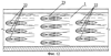фиг.9 – поперечный разрез лотка рыбонакопителя, снабженного дополнительным блоком питания в виде системы затопленных струеформирующих насадков, операция привлечения и накопления рыбы;