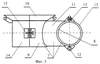 Направляющее устройство 5 (фиг. 3 и фиг. 4) состоит из корпуса 7, имеющего цилиндрическую часть 8, и направляющего элемента, состоящего из цилиндрической части 9 и конусного воротника 10, которые жестко связаны между собой соединительным элементом 11. С помощью шарниров с корпусом 7 соединены соответствующие поворотные элементы – хомуты 13 и 14, которые имеют возможность жесткого соединения с корпусом 7 соответствующими соединительными элементами 15. При этом хомут 13 предназначен для жесткого охвата трубных направляющих элементов 6, а хомут 14 – для охвата сваи 4 с наперед заданным зазором.