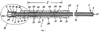 1. Инъектор, содержащий подающий трубопровод (2), который на своем подводящем конце (3) снабжен наружной резьбой (4), а на своем отводящем конце (5) – наружной резьбой (6), а также имеющий интегрированный, запирающий по направлению к подводящему концу (3), продольно канализированный обратный клапан (18) и раздуваемый шланг (28), который герметично охватывает подающий трубопровод (2) своими концевыми участками (29, 30) с образованием длинного кольцевого пространства (33), причем с одной стороны кольцевого пространства (33) в стенке (36) подающего трубопровода (2) предусмотрены поперечные каналы (37), устья (38) которых закрыты в кольцевом пространстве (33) эластичными уплотнительными кольцами (39), позиционированными соседними с обеих сторон фиксирующими кольцами (40), и с торцевой стороны отводящего конца (5) подающего трубопровода (2) установлен разрушаемый диск (25) посредством нажимного кольца (24) с режущим внутренним краем (27), а также резьбовая муфта (7) с внутренней радиальной перемычкой (9), причем обратный клапан (18) образован из шарика (17), прижатого к устью (16) продольного канала (12) в подающем трубопроводе (2), нажимной пружины (19) и опорного кольца (20), торцевая сторона которого, находящаяся в контакте с разрушаемым диском (25), снабжена поперечным пазом (23), и причем внутренний диаметр нажимного кольца (24) больше, чем внутренний диаметр опорного кольца (20), однако меньше, чем внутренний диаметр радиальной перемычки (9) в резьбовой муфте (7).