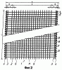 Из DE-А1-1484116 известно изготовление программы (армирующей конструкции) из арматурных сеток для железобетона, при котором в целях существенного уменьшения большого числа по-разному калиброванных стержней, используемых для выполнения всей программы, а также в целях производства, предотвращающего разную ширину сеток, отдельные серии программы состоят из арматурных сеток одинаковой ширины, а все арматурные сетки одной серии – из стержней, одинаковых по диаметру, по меньшей мере, во внутренней зоне сетки. При этом в пределах каждой серии от одного типа сетки к другому число стержней иное, причем у всех серий ширина внутренней зоны отдельных арматурных сеток, по которой распределены стержни, постоянна. Эта программа сеток также не имеет согнутых в петли концов поперечных проволок и не может использовать преимущества арматурных сеток описанного выше рода.