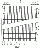 Задачей изобретения является исключение недостатков известных арматурных сеток и создание арматурной сетки описанного выше рода, которая, с одной стороны, с применением горячекатаного материала с диаметрами проволок, равными целому числу, была бы в качестве сетки с экономией краев особенно рентабельной в изготовлении, т.е. с как можно малой градацией диаметров, и которая, с другой стороны, в рамках армирующей конструкции (далее типовой программы) сеток обеспечивала бы как можно более тонкую градацию номинальных сечений проволок по ширине сетки для решения всех задач армирования поверхностных железобетонных строительных элементов.