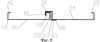 На фиг.12 изображен лоток в месте его соединения с настенными желобами.