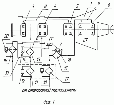 Система очистки масла силовой установки наземного использования работает следующим образом (см. фиг.1).