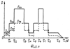 Типовая диаграмма работы заряда в стендовом устройстве приведена для 3-х режимов (см. фиг.4). Здесь по горизонтальной оси указаны время работы ( ), соответствующее каждому режиму до окончания истечения продуктов сгорания из камеры дв. По вертикальной оси указаны давление в камере сгорания «Рк» и давление в предсопловом объеме (ресивере) «Рр» для каждого режима (Рк1, Pp1, 0÷ 1; Рк2, Рр2, 1÷ 2 и т.д. до дв).