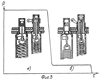 При переходе на режим повышенного давления по команде с пульта управления 34, привод 33 и кинематика 32 обеспечивают поворот вала 29 и коромысла 28. Коромысло, связанное с цапфами внешней кольцевой заслонки 15, перемещает заслонку в крайнее верхнее положение, перекрывая выпускные окна 13 клапана минимального режима. Давление в камере начинает расти (оба клапана работают в режиме утечек). Под действием газодинамических сил поршень клапана минимального режима переходит в крайнее верхнее положение и садится на упоры. Рост давления продолжается до тех пор пока шток с поршнем 20 клапана максимального режима не откроет окна 22 и не перейдет в состояние, соответствующее равновесию газодинамической силы и силы упругости пружины 19. После этого он стабилизирует давление в окрестности требуемого уровня (фиг.3, вар. а).
