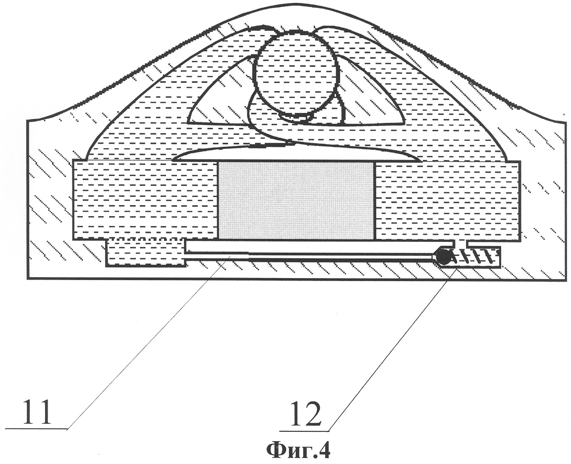 Изобретение поясняется чертежами, где на фиг.1 изображена блок-схема тормоза колесного транспортного средства, на фиг.2 изображено заявляемое устройство в двух проекциях, на фиг.3 изображено сечение по А-А фиг.2, на фиг.4 – сечение по Б-Б фиг.2.