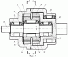 Рабочие поверхности зубьев 22 и 23 (фиг.3, 4) каждого солнечного колеса 3 и 21 образованы направляющей, представляющей собой замкнутую гипоциклоидальную линию, взаимосопряженную с замкнутой эпициклоидальной линией зубчатого колеса сателлита. Эта направляющая образована методом обката профиля зубчатого венца сателлита 13 при имитации рабочего движения зубчатых венцов сателлита 16 и 17 относительно зацепляющихся с ними соответствующих солнечных колес 3 и 21.