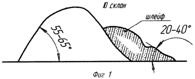 Пример. Способ был реализован при сушке бурого угля технологической марки 1Б на Сергеевском месторождении Амурской области. Из исходного угля влажностью 55,7%, зольностью 15%, с низшей теплотой сгорания 1980 ккал/кг (8,29 МДж/кг), массой 165 т сформировали штабель высотой (2,5-3,5) м по гребню с поперечным сечением в виде равнобедренного треугольника. Ширина основания штабеля 3,0-3,5 м. Продолжительность цикла сушки была принята 5 дней на южном склоне и 7 дней на северном, причем из времени сушки исключались дни с осадками более 1 мм в сутки. К концу цикла в основании откосов образовался шлейф неравномерной ширины 0,2-0,5 м в виде конусов осыпания. Влажность мелочи в шлейфе варьировала от 18 до 21%. Обрушали высохший уголь с откосов в два приема, протаскивая шаблон. Вначале сыпался слой 50-55 мм, влажность которого составила 17-22%. Следующий слой 50-55 мм имел влажность 21-36%, в среднем 31%. Обрушенная угольная мелочь сформировала шлейф с откосом 27-42%, который имел максимальную ширину по основанию 1,2 м. Усредненные образцы сухого угля имели влажность 21-26%, зольность 19%, низшую теплоту сгорания 3870-4185 ккал/кг или 16,2-17,5 МДж/кг.
