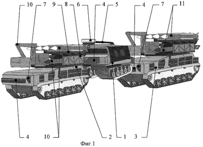 На фиг.1 показан внешний вид сочлененного самоходного зенитного ракетного комплекса.