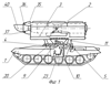 Наведение теплового газового потока на обрабатываемый объект и наблюдение за процессом обработки и за местностью производится через приборы 10 наблюдения башенки 9. Установка 4 бронированного корпуса 3 на поворотной платформе посредством стыковочных фланцев 12 на ребрах 11, каждое из которых расположено на прямой линии, проходящей через ось вращения башенки 9, обеспечивает практически полную круговую обзорность командиру-оператору через приборы 10 наблюдения без вращения башенки 9 вокруг своей вертикальной оси.