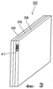 Обратимся теперь к рассмотрению фиг.2, на которой показано, что каждый единичный элемент 30 топливного элемента 10 образован за счет введения блока мембранного электрода (БМЭ) 29 между двумя сепараторами 36 и 38. БМЭ 29 образован за счет введения мембраны из твердого электролита 31 между электродами газовой диффузии 34 и 35. Мембрана из твердого электролита 31 в смоченном состоянии работает как проводящий протоны электролит. Мембрана из полимера перфторсульфоновой кислоты, такая как мембрана Nafion фирмы Дюпон, может быть использована в качестве мембраны из твердого электролита 31. Каждый из электродов газовой диффузии 34, 35 изготовлен из углеродной ткани, которая представляет собой тканый материал из нитей углеродного волокна, причем электроды имеют длину немного короче длины мембраны из твердого электролита 31. Каталитические электроды 32, 33 встроены соответствующим образом на поверхностях электродов газовой диффузии 34, 35, которые обращены к мембране из твердого электролита 31. Каталитические электроды 32, 33 изготовлены из углеродного порошка с наполнителем в виде платины, сплава платины и другого металла, или иного наполнителя, действующего в качестве катализатора. Каждый из сепараторов 36, 38 имеет главным образом прямоугольную форму и изготовлен из газонепроницаемого плотного углерода, то есть из углерода, спрессованного для придания ему свойства газонепроницаемости. Сепараторы 36, 38 служат в качестве перегородок между единичными элементами 30. Канал для топливного газа 37 образован на поверхности сепаратора 36, которая обращена к электроду газовой диффузии 34. Канал для газообразного окислителя 39 образован на поверхности сепаратора 38, которая обращена к электроду газовой диффузии 35. Как это показано на фиг.3, штрих-код 41 нанесен на открытой боковой поверхности сепаратора 38. Зазоры, образованные сепараторами 36, 38 и блоком БМЭ 29, не имеющим электродов газовой диффузии 34, 35, заполнены герметизирующим составом 40, чтобы исключить утечку через зазоры топливного газа, газообразного окислителя и смеси указанных газов.