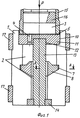 На фиг.1 представлен продольный разрез пресс-формы в сборе, на фиг.2 – поперечное сечение по А-А.