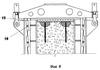 В качестве варианта механизм бокового обжатия может быть выполнен в виде парных домкратных реек 15, разделенных роликами 16, которые установлены с возможностью перемещения по рейкам 15. При перемещении домкратных реек 15 относительно друг друга происходит их раздвижка посредством катящихся по наклонным плоскостям домкратных реек 15 роликов 16. Раздвижка домкратных реек создает в бетонной смеси необходимое опрессовочное давление. В этом случае обеспечивается замена трения скольжения при повороте распорок 11 на трение качения роликов 16, в результате чего экономится энергия на создание необходимого давления на бетонную смесь.