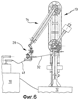 Манипулятор 14, в этом случае, уравновешен при помощи системы противовесов, содержащей два шкива 19 и 20, соединенные друг с другом при помощи каната 21, и два противовеса 22 и 23. Противовес 22 установлен на шкиве 20, а противовес 23 установлен на ветви несущей конструкции 17 циркульного типа, опирающейся на основание 18.