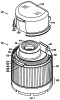 Предпочтительно, указанный корпус имеет, по меньшей мере, один канал, который открыт вверх и проходит в дугообразной конфигурации на протяжении менее 360° вокруг указанного дозирующего отверстия; указанный удерживающий элемент выступает над частью канала для автоматического вхождения в зацепление с входящей в зацепление частью, когда указанную крышку закрывают в первый раз; и указанный закрепляющий элемент расположен на указанной крышке для автоматической вставки в указанный канал, когда указанную крышку закрывают в первый раз.