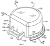 Как показано на фиг.3, крышка 40 включает верхнюю стенку 122 и юбку 124. Крышка 40 имеет расположенную на передней стороне юбки 124 выемку 126. Над выемкой 126 от верхней части крышки 40 отступает наружу язычок 128 для подъема большим пальцем руки.