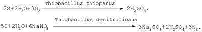 Предлагаемое изобретение относится к области теплоэнергетики, в частности к способам подготовки добавочной воды теплосети с использованием биохимического процесса окисления, основанного на использовании микрорганизмов (бактерий) рода Thiobacillus. Предлагаемое изобретение предназначено для использования в котельных и на тепловых электростанциях. Известен способ очистки воды от сероводорода в реакторе биохимического окисления путем пропускания исходной воды и воздуха через затопленную зернистую загрузку щебня или гравия. В результате через 1-2 недели на загрузке развиваются тионовые бактерии Thiobacillus thioparus, окисляющие сероводород до серы и сульфатов. В случае необходимости интенсификации развития тионовых бактерий в исходную воду перед реактором биохимического окисления вводят раствор триполифосфата натрия (1). Известен также способ очистки промышленных сточных вод от сульфидов путем их бактериального окисления, канализируемого микроорганизмами Thiobacillus ferroxidans (2). Действие бактерий Thiobacillus thioparus или Thiobacillus ferroxidans в известных способах основано на их способности окислять содержащийся в исходной воде сероводород или сульфиды до серы и сульфатов. Известные способы обеспечивают снижение содержания в воде сероводорода, сульфидов и железа двухвалентного. Недостатком известных способов (1 и 2) является то, что они могут быть использованы только при наличии в воде свободного сероводорода или сульфидов. Известные способы не позволяют удалять из воды нитрат-ионы. Известен способ подготовки добавочной воды для тепловых сетей, включающий стадии: коагуляции и осветления; или обезжелезивания; декарбонизации и термической деаэрации воды (3). Недостатком способа является сложность и многостадийность процесса. Наиболее близким по технической сущности и достигаемому результату является способ подготовки добавочной воды для тепловых сетей, включающий подкисление исходной воды и удаление из нее растворенного кислорода. Для подкисления используют серную кислоту и подкисление добавочной воды осуществляют с целью снижения карбонатной жесткости воды, обусловленной присутствием в воде бикарбонат-иона. При подкислении бикарбонат-ион заменяется сульфат-ионом и образуется свободная углекислота: Са(НСО3)2+H2SO4=CaSO4+2CO2+2Н2O. Подачу серной кислоты осуществляют дозатором пропорционально расходу исходной воды. Для исключения возможности попадания кислой воды в водонагревательное оборудование и теплосеть подкисленную воду подвергают катионированию на буферном нерегулируемом фильтре. Удаление растворенного кислорода осуществляют путем вакуумной термической деаэрации (3). Недостатком известного способа является сложность и высокая стоимость процесса, обусловленные наличием нескольких стадий, использованием дорогостоящих энергоресурсов для термической деаэрации, высокой стоимостью серной кислоты и катионитов. Недостатком способа также является использование агрессивной и химически опасной серной кислоты, необходимость и трудность ее систематического дозирования пропорционально расходу исходной воды с коррекцией по качеству обработанной воды. Кроме того, известный способ характеризуется наличием вторичных сточных вод, получаемых в результате регенерации катионитовых фильтров. В основу изобретения поставлена задача усоверш