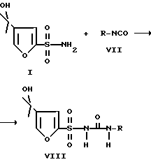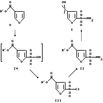 (57) Реферат: Описывается новый эффективный способ получения сульфонамидных соединений фурана формулы I, включающий взаимодействие соединения формулы II с метилированным реактивoм Гриньяра в реакционном инертном растворителе, где R’ представляет (C1-C6)алкил. Соединения формулы I используют как промежуточные продукты с изоцианатными соединениями с образованием сульфонильных производных мочевины, которые являются полезными ингибиторами интерлейкина -1 и -1 (1L-1), используемыми для лечения центральной нервной системы. Технический результат – упрощение процесса. 3 с. и 12 з.п. ф-лы.