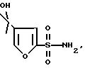 Элементный анализ для C7H9NO5SРассчитано: C 38,35; H 4,14; N 6,39; S 14,62 Найдено: C 38,42; H 4,08; N 6,31; S 14,70. Пример V 4-(1-гидрокси-1-метил-этил)-фуран-2-сульфонамид Сложный эфир сульфонамида примера IV (25 г, 0,114 молей) растворяют в сухом тетрагидрофуране (1 л) под азотом. Раствор охлаждают до -10oC и перемешивают, пока по каплям в течение 5 мин добавляют метилмагнийхлорид (171 мл, 3М в тетрагидрофуране), получая прозрачный раствор. Убирают охлаждающую баню и оставляют реакционную смесь нагреваться до комнатной температуры. Во время нагревания реакционная смесь загустевает, а потом становится более жидкой. Через 6 ч ТСХ показывает, что реакция завершена. Реакционную смесь охлаждают до -5oC и обрабатывают раствором хлорида аммония (137,4 г в 700 мл воды). Первоначальное гашение вызывает некоторую экзотермичность и выделение газа при первых 50 мл. Оставшийся раствор быстро добавляют. По окончании гашения получают прозрачный раствор. Добавляют этилацетат (500 мл) и разделяют слои. Водный слой второй раз экстрагируют этилацетатом (500 мл). Объединенные органические слои промывают соляным раствором и сушат над сульфатом натрия. Раствор фильтруют и концентрируют до меньшего объема. Добавляют изопропиловый эфир (ИПЭ) и раствор снова концентрируют. Во время процесса продукт представляет собой масло, а затем затвердевает. Добавляют еще ИПЭ и перемешивают суспензию 3 ч. Твердое вещество собирают, а фильтрат выпаривают до твердого вещества. Твердое вещество из фильтрата растирают с метиленхлоридом, получая еще требуемый продукт, который объединяют с твердым веществом из ИПЭ и растирают с метиленхлоридом, получая сульфонамидный спирт 4-(1-гидрокси-1-метил-этил)фуран-2-сульфонамид в виде твердого вещества, 19,98 г выход 85%. Т.пл. 92oC (спекшийся), 99,5-101,5oC. 1H ЯМР (ДМСО-d6, 300 МГц) : 151,7, 140,3, 136,6, 112,1, 66,6, 31,0.