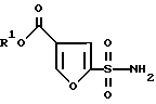 Элементный анализ для C12H13NO6SРассчитано: C 48,15; H 4,38; N 4,68; S 10,71 Найдено: C 48,07; H 4,33; N 4,70; S 10,71. Пример IV Этил 2-(сульфонамид)-4-фуроат Бикарбонат аммония (89,93 г, 1,137 моля) растворяют в воде (1,5 л). Это дает понижение температуры до 17,5oC. Реакционную смесь перемешивают, добавляя при этом по каплям за 16 мин раствор сульфонилхлорида (67,8 г, 0,284 моля) в ацетоне (500 мл). Во время добавления температура увеличивается до 25oC. Через 65 мин тонкослойная хроматография (ТСХ) показывает, что реакция завершена (силикагель, гексан:этилацетат = 4:1). Добавляют этилацетат (500 мл) и снижают pH до 2,0 концентрированной соляной кислотой (HCl), которую добавляют по каплям (примерно 53 мл). Разделяют слои и водный слой насыщают хлоридом натрия (NaCl) и экстрагируют этилацетатом. Объединенные органические слои промывают соляным раствором и сушат над сульфатом натрия. Экстракт концентрируют до примерно 175 мл и пропускают через слой силикагеля, который тщательно промывают этилацетатом (конечный объем 650 мл). Этилацетат удаляют в вакууме и остаток переносят в горячий этилацетат (150 мл) и фильтруют для удаления мутности. Это концентрируют до примерно 100 мл и добавляют по каплям гексан (250 мл). Полученную суспензию перемешивают в течение 30 мин, затем собирают и промывают смесью гексан:этилацетат = 4:1. Сульфонамид сушат на воздухе. Выход составляет 39,9 г, 64%, т.пл. 131-132,5oC. ИК (смещения) 3340, 3261, 3150, 1697, 1579, 1561, 1364, 1219, 1195 см-1. 1H ЯМР (ДМСО-d6, 300 МГц) : 8,62 (с, 1), 7,94 (с, 2, NH2), 4,25 (кв, 2), 1,27 (т, 3). 13C ЯМР (ДМСО-d6, 300 МГц) : 161,7, 153,9, 150,8, 120,0, 112,0, 61,2, 14,5.