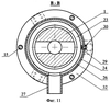 На фиг.12 показан пример соединения упорных колец 22 и 23 стержнями 35. При таком соединении проход бетонной смеси или буровых растворов от патрубка 27 в жидкостную полость 28 обеспечивается при любом повороте упорных колец и нет необходимости в какой-либо фиксации положения этих колец.