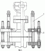 Пакер 5 (фиг.5) состоит из корпуса 32, внутри которого между двумя упорными подшипниками 33 вращается цапфа 34, нижней резьбовой частью ввернутая во втулку 35, сочлененную с жестким нажимным диском 36. Проворот втулки 35 относительно корпуса 32 при вращении цапфы 34 предотвращается стопорными винтами 37, гладкой цилиндрической частью скользящими в пазах корпуса.