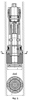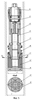 В наружном цилиндре полого сдвоенного концентрического штока 4, в верхней его части, установлена ходовая гайка 21; к верхнему торцу внутреннего цилиндра приварена втулка 22 с шестигранным отверстием, сопрягаемым по ходовой посадке с шестигранным стержнем 6. В нижней части полого сдвоенного концентрического штока 4 оба цилиндра (наружный и внутренний) сочленены друг с другом с обеспечением осевого проворота внутреннего цилиндра относительно внешнего при вращении шестигранного стержня 6. При вращении полого ходового винта 3, который располагается в кольцевом зазоре между наружным и внутренним цилиндрами сдвоенного штока, последний получает поступательное перемещение в вертикальном направлении.