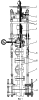 Корпус 1 (фиг.2) представляет собой трубу, верхний конец которой ввинчен по конической (герметичной) резьбе в опорную втулку 9 с узлом уплотнения 10, поджимаемым втулкой резьбовой 11, в которой на радиальном подшипнике 12 приводится во вращение штурвалом 13 полый ходовой винт 3. От выталкивания из устройства при действии давления скважинной среды полый ходовой винт 3 фиксируется упорным подшипником 14 и накидной гайкой 15.
